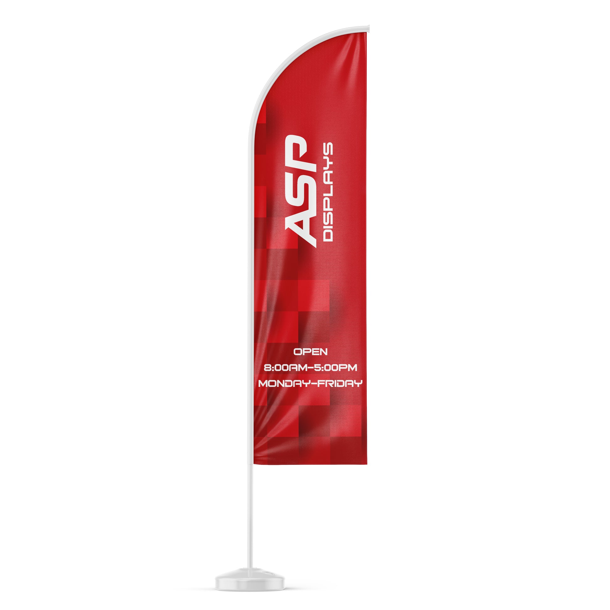 The Feather Angled Flag is suitable for indoors and outdoor events. Effectively advertise your logo or message.